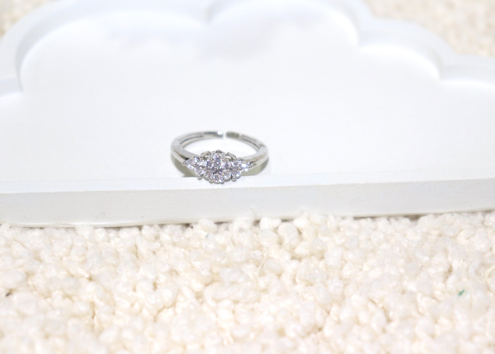 Elegant Cluster Zircon Adjustable Ring – Silver-Plated Sparkling Ring