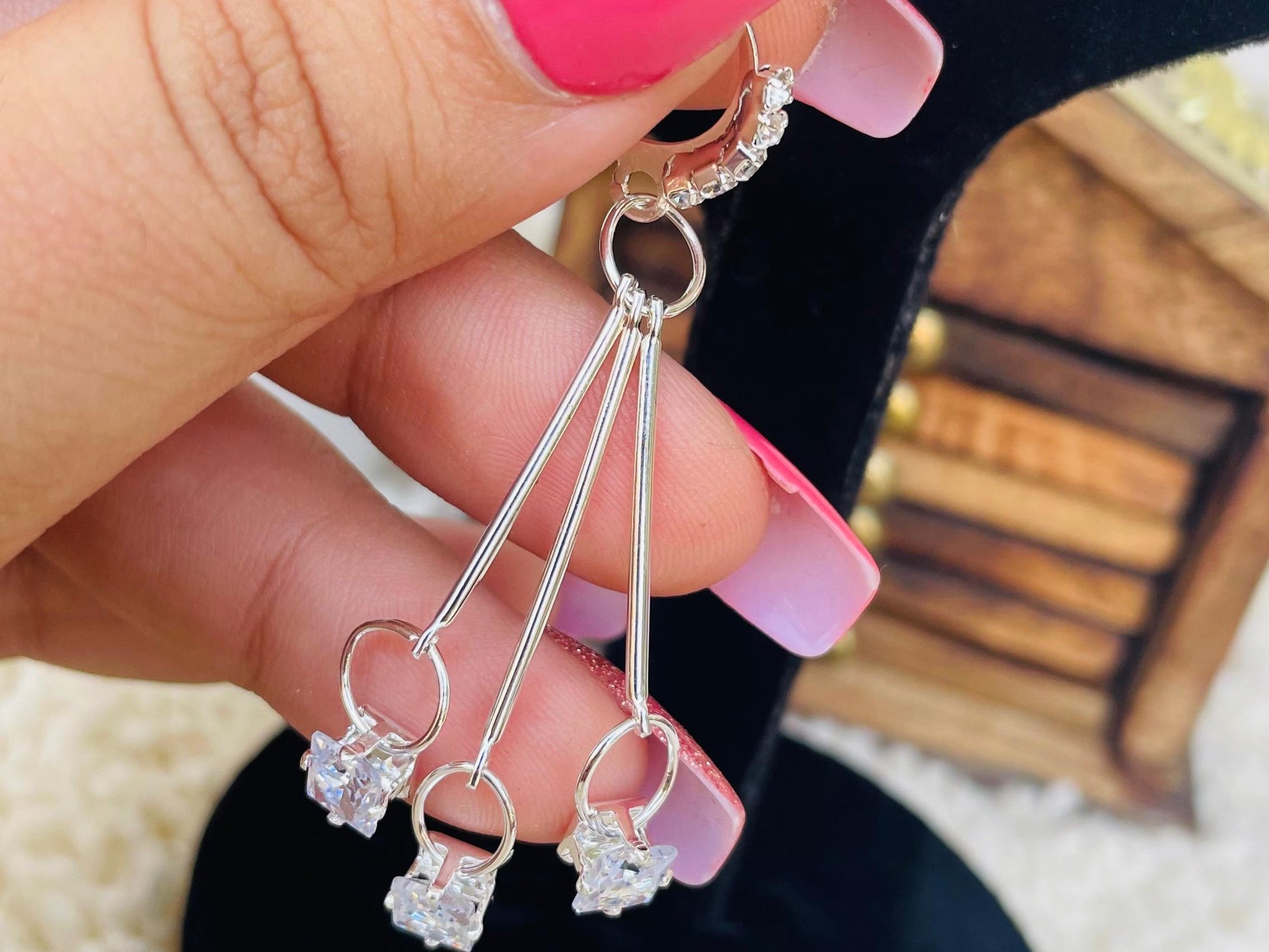 Turn heads with these dazzling silver dangle earrings, a must-have addition to your jewelry collection! 💎✨