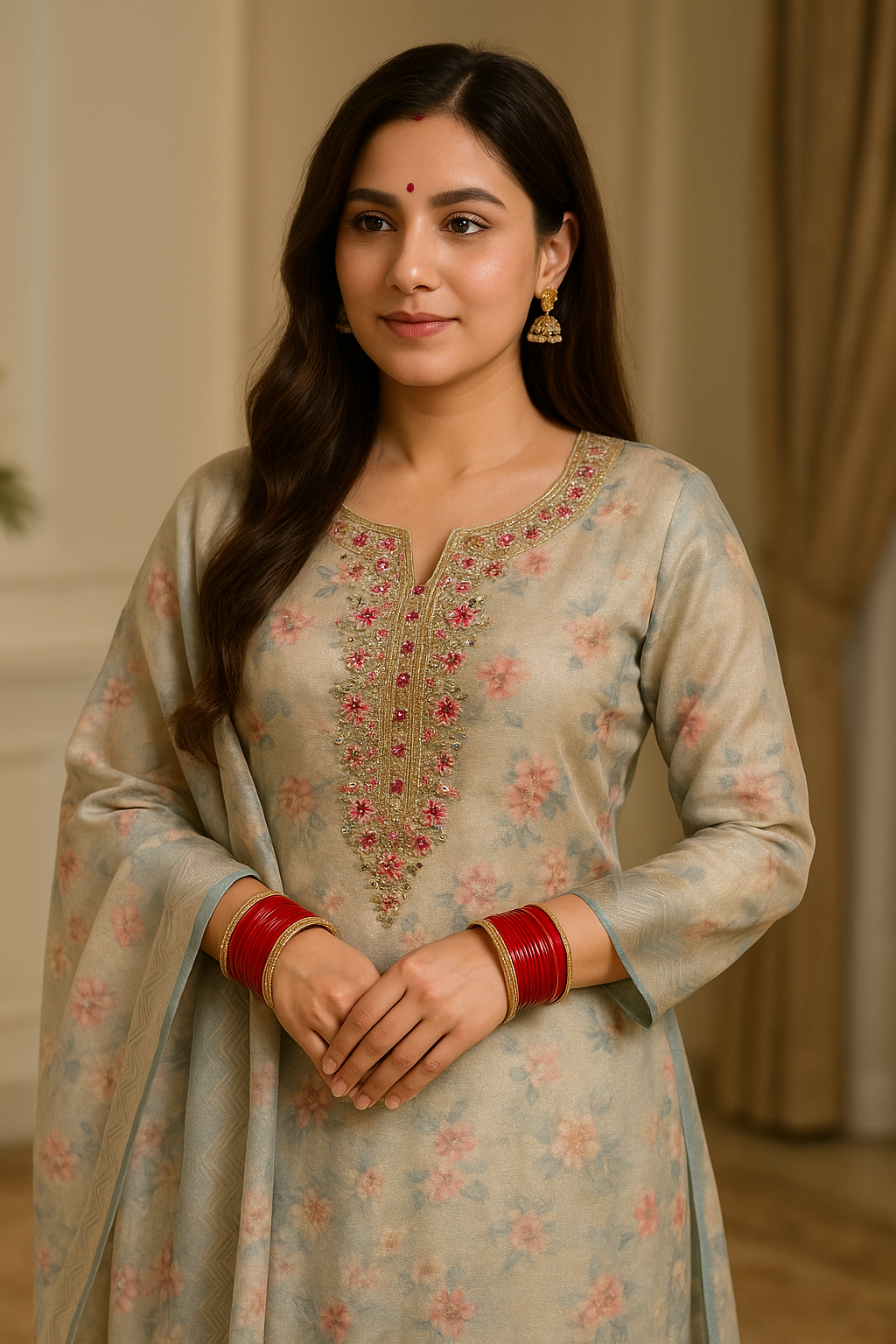 Elegant Floral Embroidered Chanderi Shimmer Suit