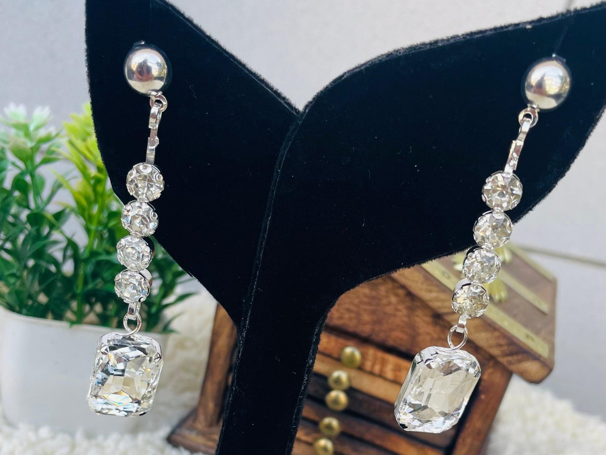 Whether you're dressing up for a special occasion or looking for the perfect statement piece, these crystal dangle earrings will ensure you shine with grace and elegance! ✨