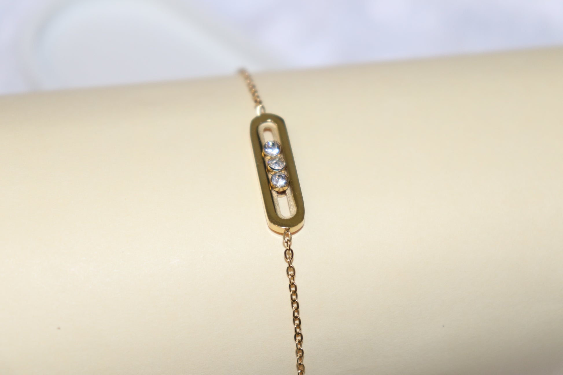 Add a touch of everyday elegance to your look with this Minimalist Gold Chain Bracelet, featuring a sleek design with a vertical bar centerpiece adorned with three sparkling cubic zirconia stones. This delicate bracelet is perfect for daily wear, office chic, or layering with other pieces for a trendy stacked look.