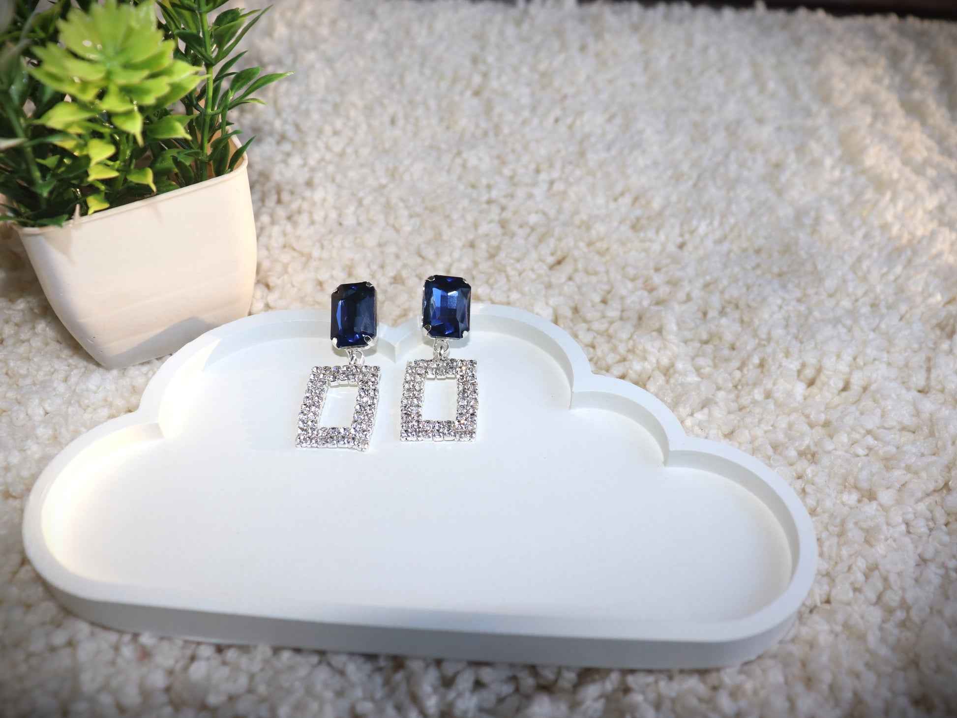 Make a bold fashion statement with these gorgeous blue crystal earrings and add a touch of glamour to your collection! 💙✨