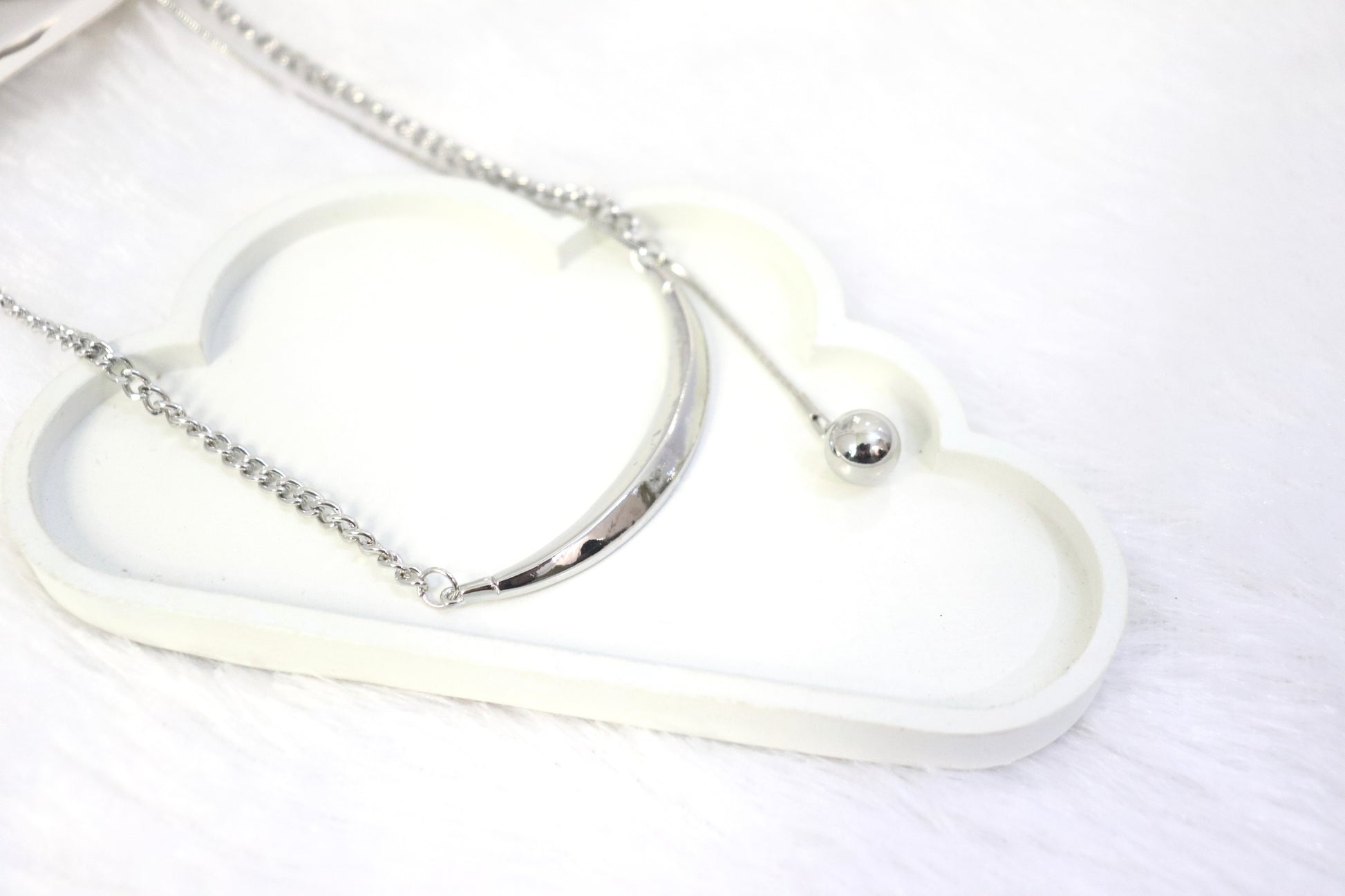 Add a touch of celestial elegance to your jewelry collection with our Sleek Silver Crescent Pendant Necklace. Designed for modern minimalists, this unique piece features a curved silver bar complemented by a delicate hanging ball charm, creating a graceful and contemporary aesthetic.